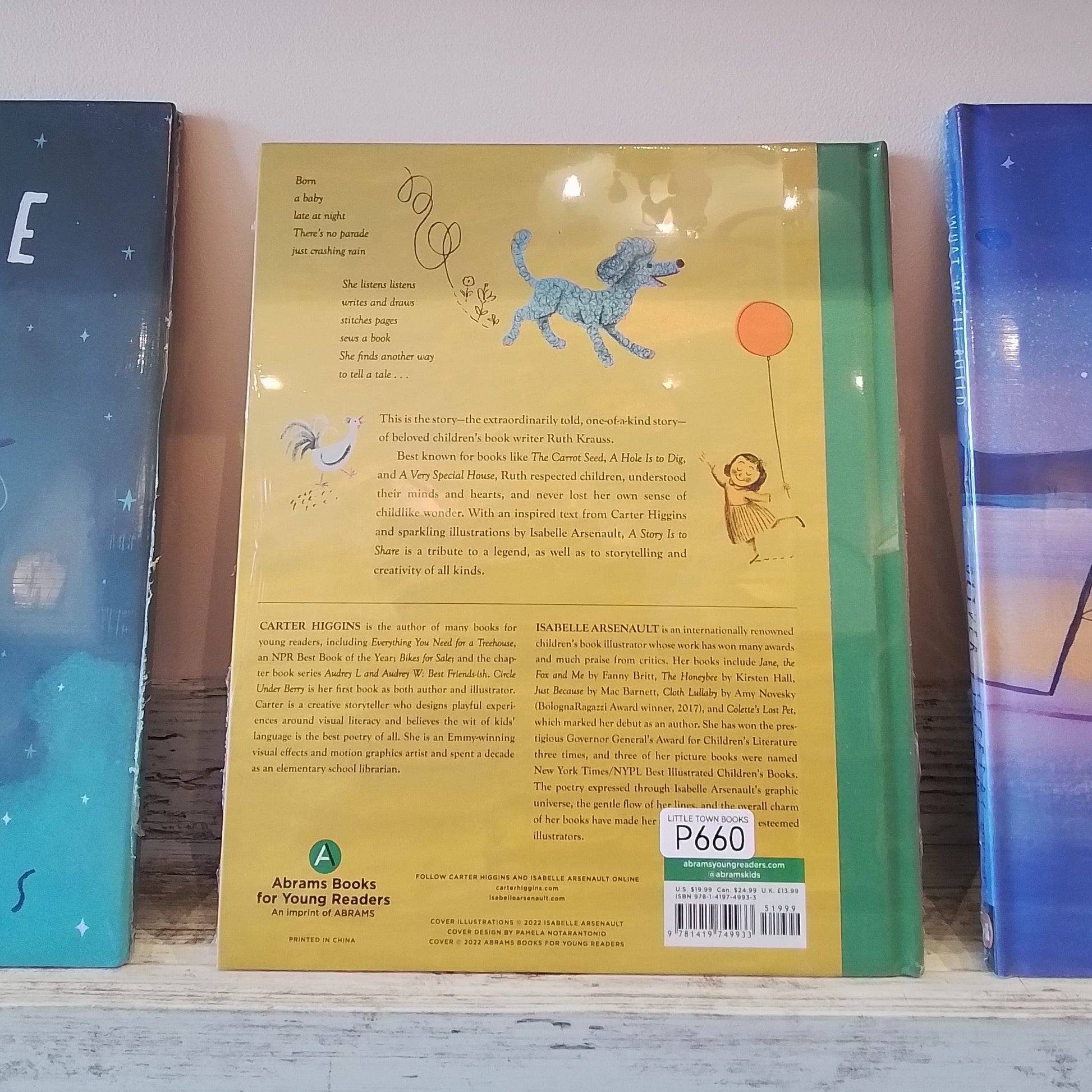 A picture book from award-winning storytellers, author Carter Higgins and illustrator Isabelle Arsenault, A Story Is to Share is the extraordinarily told, one-of-a-kind story of legendary author and children’s book icon Ruth Krauss.