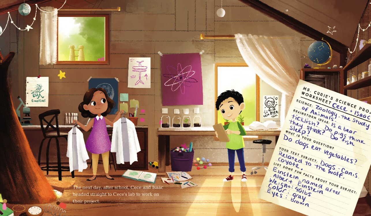 “Excited by her teacher’s assignment to find and investigate a question, [Cece] pairs up with a partner, Isaac, to brainstorm ideas...The story includes images of an inviting science classroom and mentions a variety of sciences and a range of scientists diverse in race and gender. ... Words and pictures combine to make smooth blend of entertainment and education.” - School Library Journal