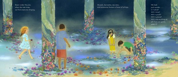 There’s lots of fun to be had up on the pier—the Ferris wheel, the rollercoaster, Skee-Ball and Whac-A-Mole, cotton candy, copper coins, the carousel. But it’s down under the pier, at low tide, where the real magic can be found. The best part? It’s free. Nell Beckerman’s poetic text and deep love of the intertidal zone, and Rachell Sumpter’s dreamy, “endless summer” art make this the perfect beach book.