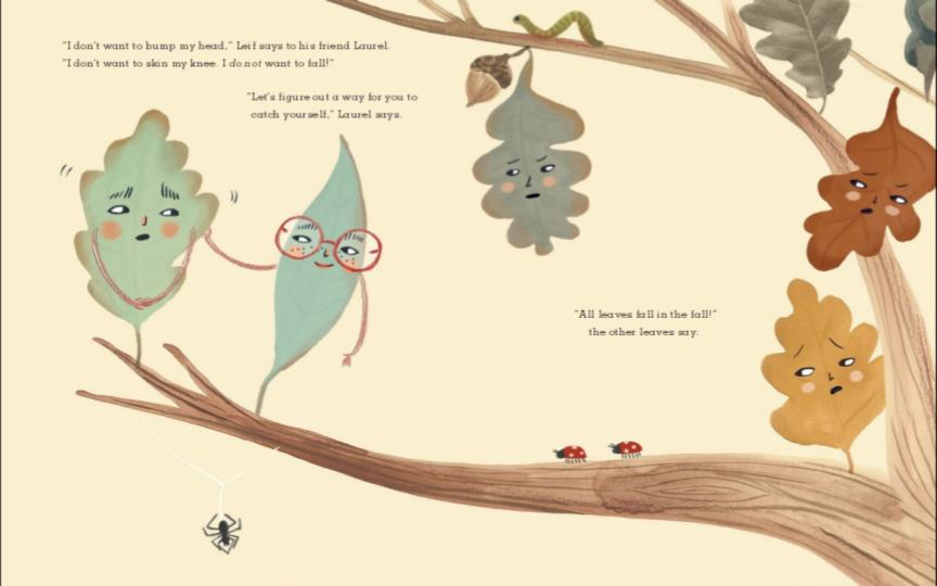 Leif is a leaf. A worried leaf. It is autumn, and Leif is afraid to fall. "All leaves fall in the fall," say the other leaves. But Leif is determined to find a different way down, and with his friend Laurel, he uses the resources around him to create a net, a kite, a parachute in hopes of softening his landing. The clock is ticking, the wind is blowing. What will happen when a gust of wind pulls Leif from his branch?