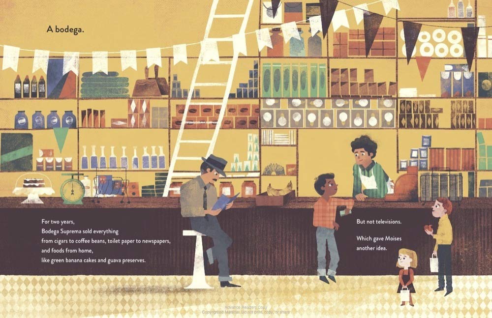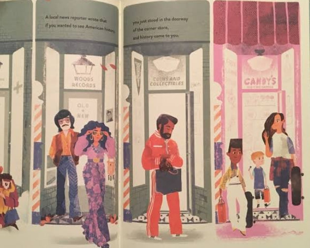 The illustrations, pen and pencil drawings (hand drawn and digitally rendered) in muted tones, add depth to the story with detailed imagery that breaths life into the ever-changing corner store." - School Library Journal