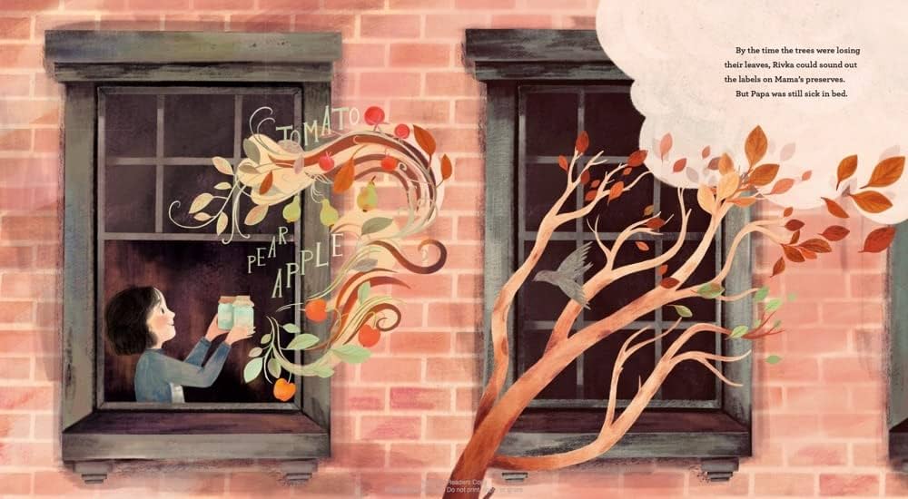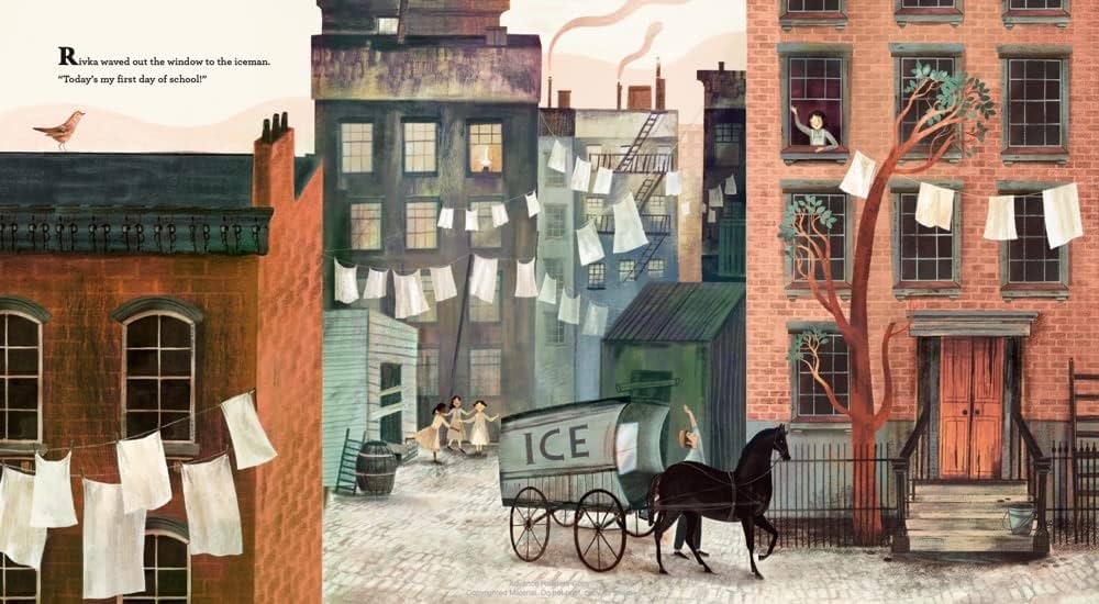 It's 1918 on the Lower East Side of New York City, and Rivka is excited to start school. But when her papa gets sick with the flu, her mama has to go to work at the shirtwaist factory and Rivka needs to stay home and take care of her little sister. But Rivka figures out a way to learn anyway: she trades chores with the grocer, the tailor, and an elderly neighbor for lessons. As the seasons change, Rivka finds she can count pennies for the iceman and read the labels on jars of preserve. And one day, Papa is no longer sick, and Rivka can finally start school! Full kindness and love for your neighbors, here is a story that introduces life on the Lower East Side for a Jewish family during the flu pandemic of 1918.
